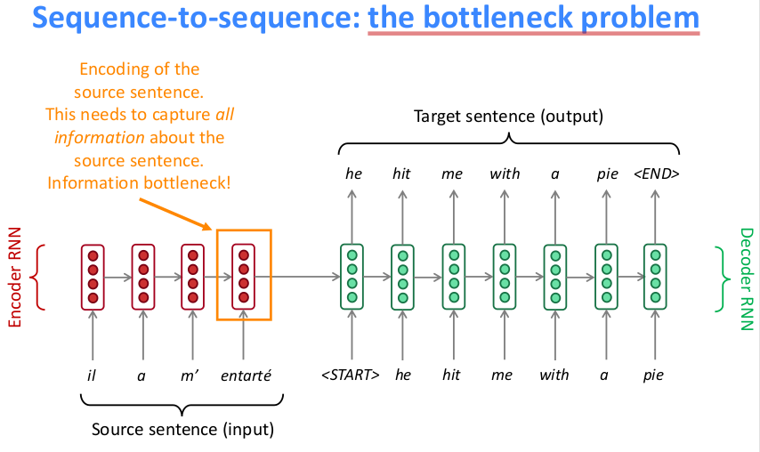 seq2seq model简便以用,但是瓶颈也很明显如下图所示